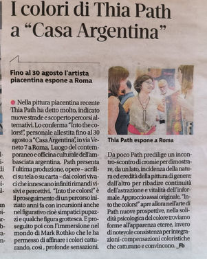 Thia Path, es mi nombre artístico, el cual refleja una profunda transformación personal mía gracias a un encuentro con la obra de Mark Rothko en 2001. Un nombre que combina la pasión por el juego y la diversión con mis nietos (Tia Pat en español), sumando la letra h en homenaje a mi maestra que me hizo descubrir el gran poder de los colores.