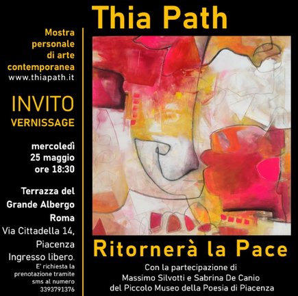 Mostra personale intitolata "Ritornerà la Pace" dal 25 maggio al 30 settembre 2022, presso il Grande Albergo Roma in Via Cittadella 14, Piacenza